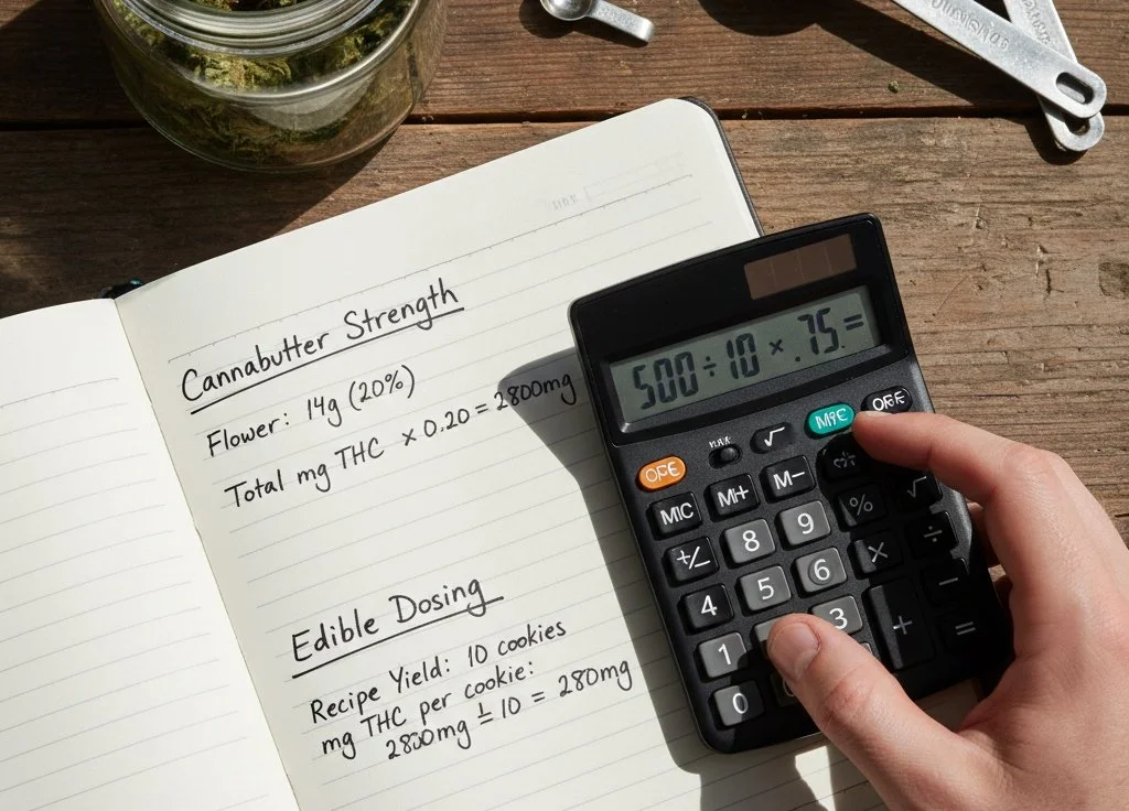 Always divide the total milligrams of THC in your batch by the number of servings the recipe produces. That gives you the per-serving dose. If it is higher than your target, adjust the cannabutter-to-butter ratio until the math works out.