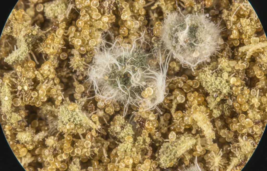 One of the trickiest aspects of inspecting kief is that mold can closely resemble the very trichomes that make kief valuable. Both appear as whitish structures to the naked eye, but under closer examination, the differences become clearer.