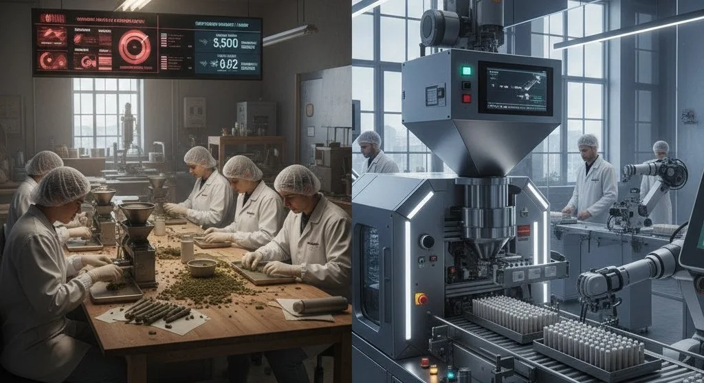 In cannabis manufacturing, automation isn't a "modernization" badge; it's a unit-level decision shaped by loaded labor cost, throughput limits, compliance exposure, and buyer intolerance for inconsistency. Dispensaries often prefer suppliers who ship on time, maintain stable pricing, and deliver consistent product performance, because reliability reduces shelf risk for buyers.