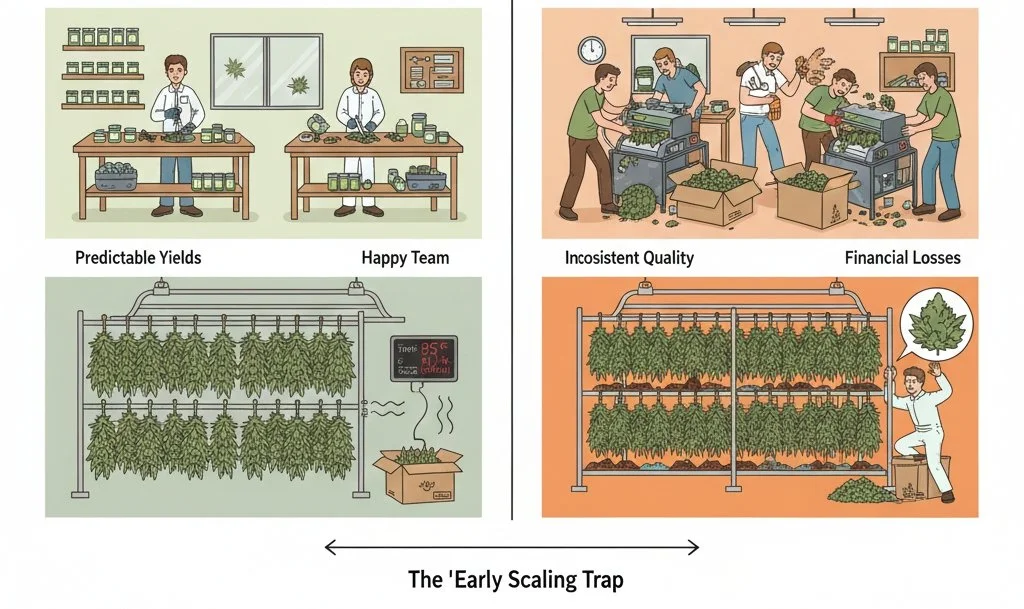 Cannabis businesses face a significant challenge when they try to scale too early. Without the right systems in place, expansion can lead to higher costs, quality issues, and increased staff stress. Many operators think bigger space and more output will fix everything, but that is not always true.